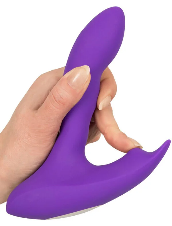 von diesem formschönen Schatz in anregendem Lila. Der Vibrator kommt mit