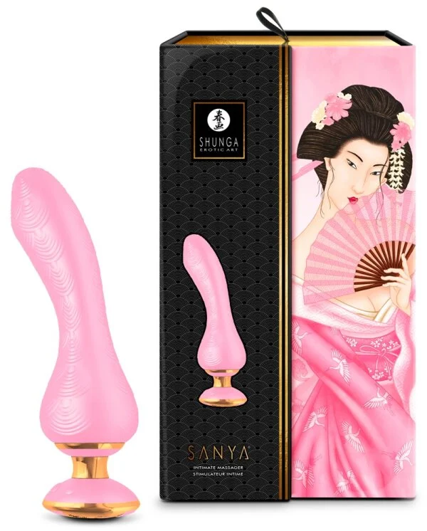 Luxuriöser Vibrator Sanya von Shunga im durchdachten eleganten Design mit ergonomischem Griff für einfache bestmögliche Kontrolle. Schön flexibel und aus medizinischem Silikon gefertigt, passt sich der seidig softe Sanya dem Körper und den Bewegungen beim Stimulieren optimal an. Seine sanften Strukturen unterstreichen dabei intensiv die intime Massage. Exklusiver Verwöhnkomfort für höchsten Lustgewinn!