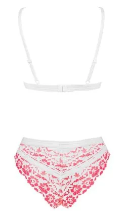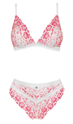 BH und Slip als Set Bloomys von Obsessive aus feiner 2-farbiger Spitze mit aufwendig eingearbeiteten weißen Stretchbändern. Weich und elastisch für höchsten Tragekomfort. Soft-BH mit Hakenverschluss im Rücken, die Träger sind passend verstellbar. Der dazu passende Slip punktet mit seinem raffinierten Schnitt, der Beine und Po aufregend betont.