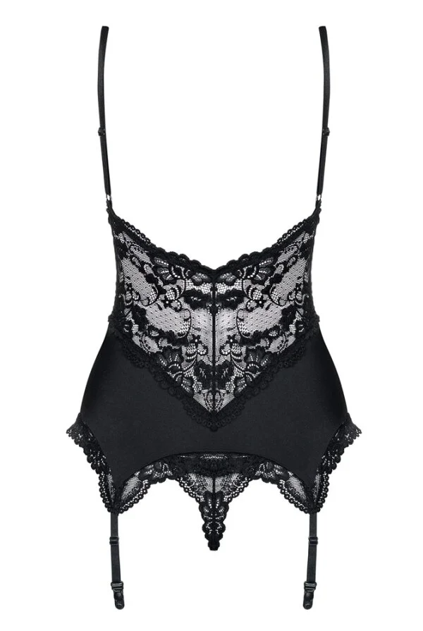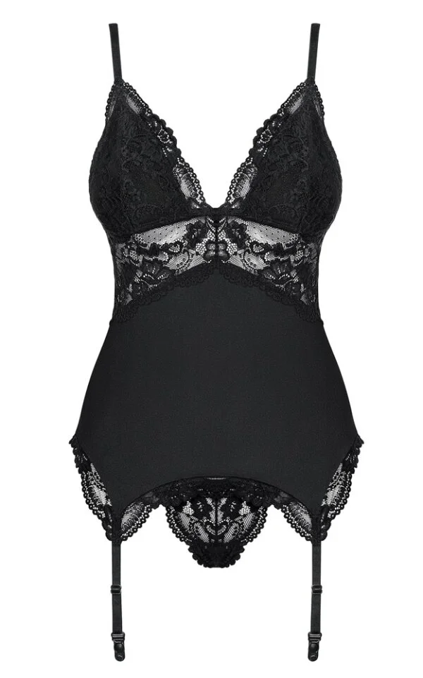 Das Strapshemd verzaubert mit reizvollen Spitzeneinsätzen. Träger und Strapse sind verstellbar. Der passende String ist inklusive. Die Strümpfe gehören nicht zum Lieferumfang und können optional bestellt werden.