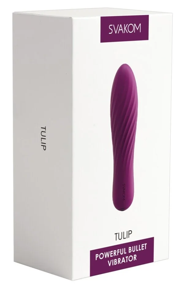 Powerful Bullet Vibrator Tulip von Svakom im kurvigen Rillendesign. Klein, kompakt, kraftvoll und ultrasoft schmiegt sich der Silikonvibrator perfekt in die Hand – und passt in jede Tasche! Das stimulationsintensive, anfängerfreundliche Leichtgewicht (42 g) lässt sich in jedes Solo- und Liebesspiel aufregend mit einbeziehen.