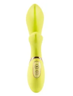 Dieser handliche Vibrator aus giftgrünem Silikon besitzt gleich zwei