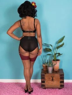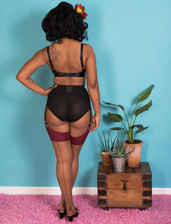 Elegante 15 DEN Nahtnylons mit Ziernaht im 50er Jahre Vintage Look. Durch den Elasthananteil haben diese Nylons die Optik der 50er Jahre mit der moderen Passform von heute.