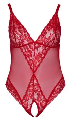 Rot-transparenter Ouvertbody aus feinem Powernet mit Soft-Cups und Einsätzen aus zarter Spitze. Rundum elastisch und soft anschmiegsam für hautnahen Sitz mit höchsten Tragekomfort. Im Schritt einladend geöffnet. Die breiten Träger sind für perfekte Passform in der Länge verstellbar.
